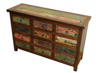 Cassettiera mobile realizzato interamente a mano in legno di barca indonesiano.