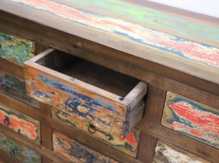 Un mobile adatto all'arredo della sala o della camera da letto, realizzato interamente a mano da abili artigiani dell'isola di Bali utilizzando il legno di recupero di vecchie imbarcazioni indonesiane in disuso. Ogni elemento del mobile è in legno massello.
