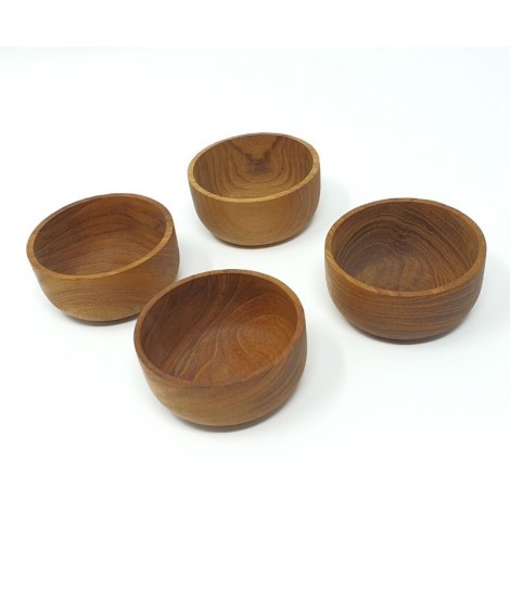 Set di quattro mini bowls da 10 cm di diametro in legno di teak indonesiano.