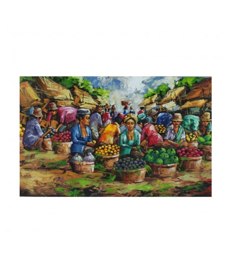 Quadro dipinto a mano su tela Mercato balinese. Misure: 138X88